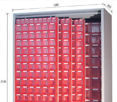 Kutije za skladištenje i komisioniranje sitnih predmeta u skladištu ili kao izložbene posude u prodajno izložbenom prostoru. Materijal od kojeg se rade je Polipropilen (PP) i Polietilen (PE). Složive su jedna na drugu, sa prednje strane imaju mogućnost ubacivanja etikete. Materijal od kojeg se izrađuju im omogućuje upotrebu na temperaturama od – 40°C do + 80°C bez opasnosti od napuknuća ili pucanja (PP od -20°C do 100°C). Otporne na: ulja, kiseline, otapala i deterđente. Potpuno bezopasne za prehrambene proizvode. Dizajnom su potpuno prilagođene da se integriraju sa poličnim regalima iz naše ponude, kao i da budu na samostojećim stalcima ili pločama.