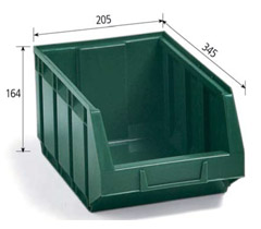 Kutije za skladištenje i komisioniranje sitnih predmeta u skladištu ili kao izložbene posude u prodajno izložbenom prostoru. Materijal od kojeg se rade je Polipropilen (PP) i Polietilen (PE). Složive su jedna na drugu, sa prednje strane imaju mogućnost ubacivanja etikete. Materijal od kojeg se izrađuju im omogućuje upotrebu na temperaturama od – 40°C do + 80°C bez opasnosti od napuknuća ili pucanja (PP od -20°C do 100°C). Otporne na: ulja, kiseline, otapala i deterđente. Potpuno bezopasne za prehrambene proizvode. Dizajnom su potpuno prilagođene da se integriraju sa poličnim regalima iz naše ponude, kao i da budu na samostojećim stalcima ili pločama.