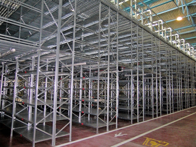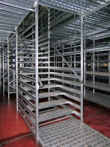 Najpovoljniji i cijenom najprihvatljiviji način za povećanje skladišnog kapaciteta već postojećeg objekta je tzv. Etažno skladište ili skladište sa podestom. Instalirane komponete su iz proizvodnog programa Super 1-2-3, Unirack ili Super 4-5-6. Projktiranje zavisi o nosivosti poličnog regala, traženoj nosivosti poda i raspona, položaja stubišta i ograde, visine regala i broja poličnih nivoa kao i visine do poda (ukoliko se radi o skadištu sa jednim podom). Naravno da je izvedivo i multi etažno skladište. Podni paneli koji sadrže nominalnu nosivost kroz strukturna ojačanja i debljinu samog lima su moguća u tri oblika: ravni, perforirani i rebrasti.