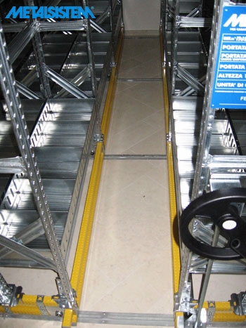 Postavljanjem regala na staze (visine 12mm), i uz pomoć mehanizma koji omogućava mobilnost sustav MOBIBASIC osigurava veliku uštedu prostora. Instalacija je od regala Super 1-2-3 i Unirack, koji postavljeni na pokretni sustav trebaju samo jedan ili nekoliko kanala (ako se želi još brže prilaziti poličnim redovima). Sav ostali prostor je rezerviran u tlocrtu samo za police, tj. koristan prostor za skladištenje bez komunikacijskih kanala. Ovaj tip skladištenja je pronašao svoju primjenu u arhivama, bibliotekama, skladištima rezervnih dijelova i sl.